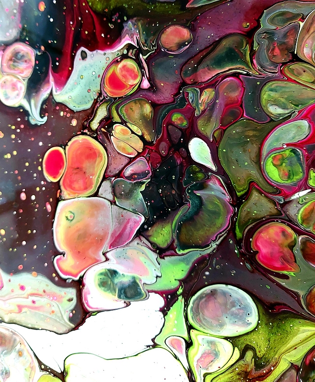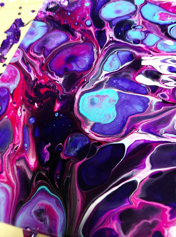 Acrylic pouring - neboli akrylové lití - je výtvarná technika originálních barevných tvarů, fascinujících abstraktních obrazců a překvapivých efektů díky tekoucí barvě.