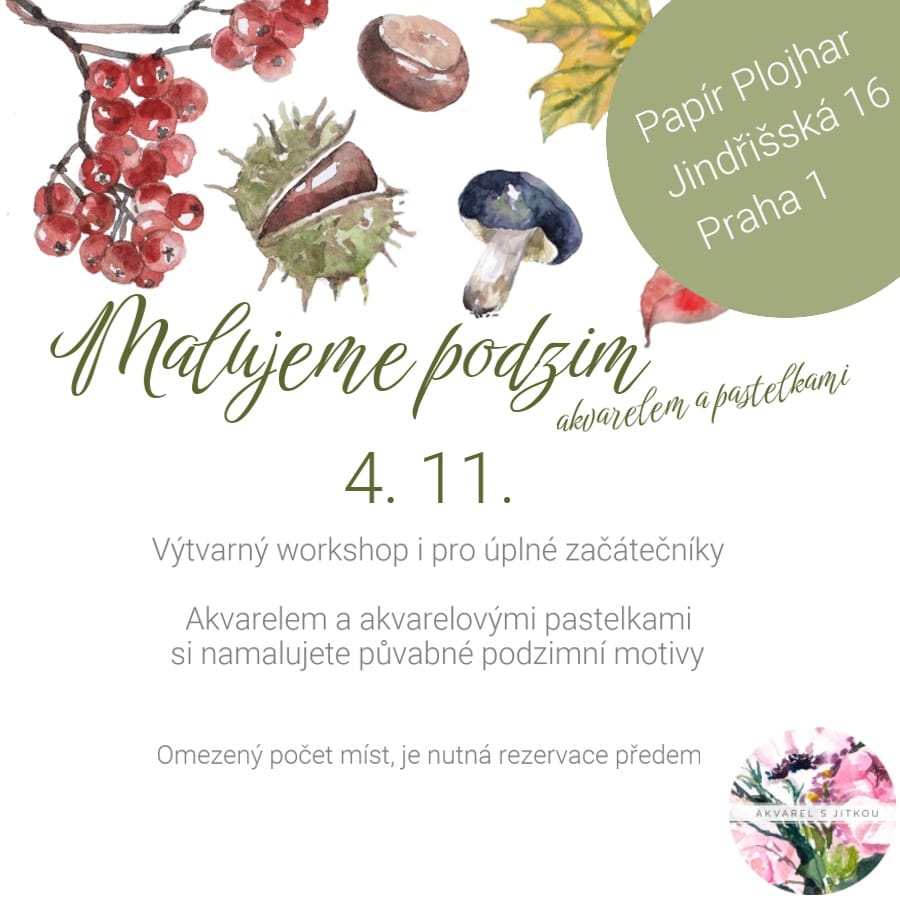 - Veškeré pomůcky budou k dispozici na kurzu, pokud ale máte vlastní akvarelové barvy a štětce, můžete je vzít s sebou. Se známými pomůckami se vám může lépe pracovat.