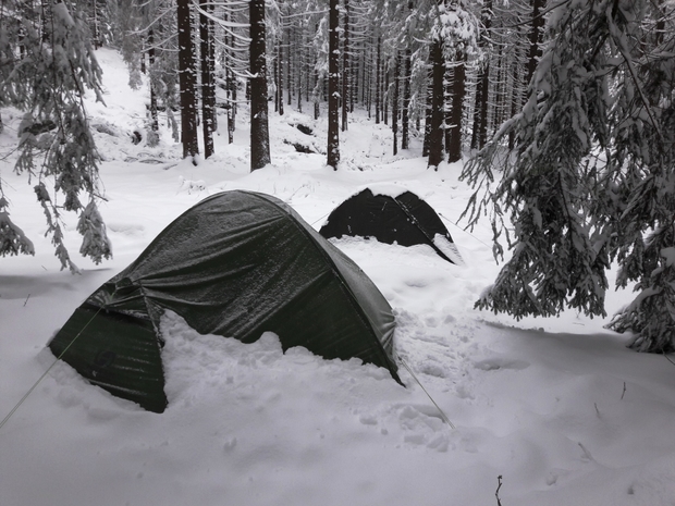 - jak využít přírodní i moderní materiály k přespání v zimních podmínkách