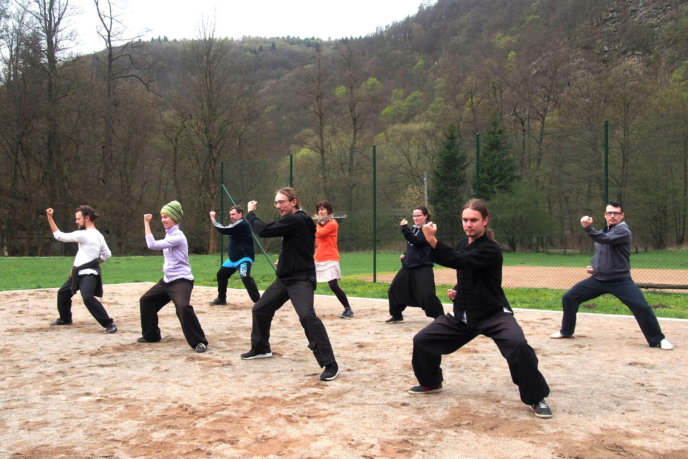 9:45 - 11:45 dopol. cvičení (základy kungfu, základy taiji, meditační postoj, WU XING Qigong)