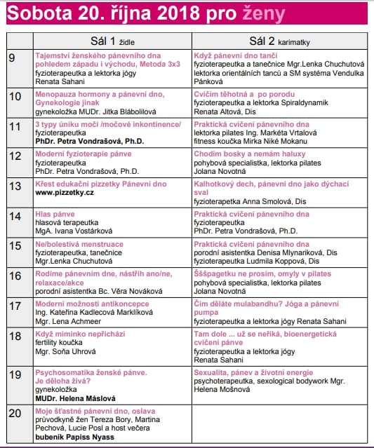 Budeme hovořit laickým jazykem, ale na své si přijde i veřejnost odborná /fyziotarapeutky, porodní asistentky, lékaři, atd.