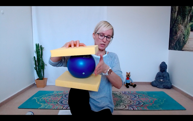 - pozdravy slunci s důrazem na správné držení těla s využitím pomůcek