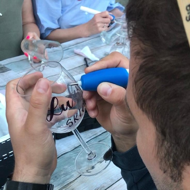 Kreativní workshop, na kterém si můžete vyzkoušet gravírování pomocí ručního pera do skla.