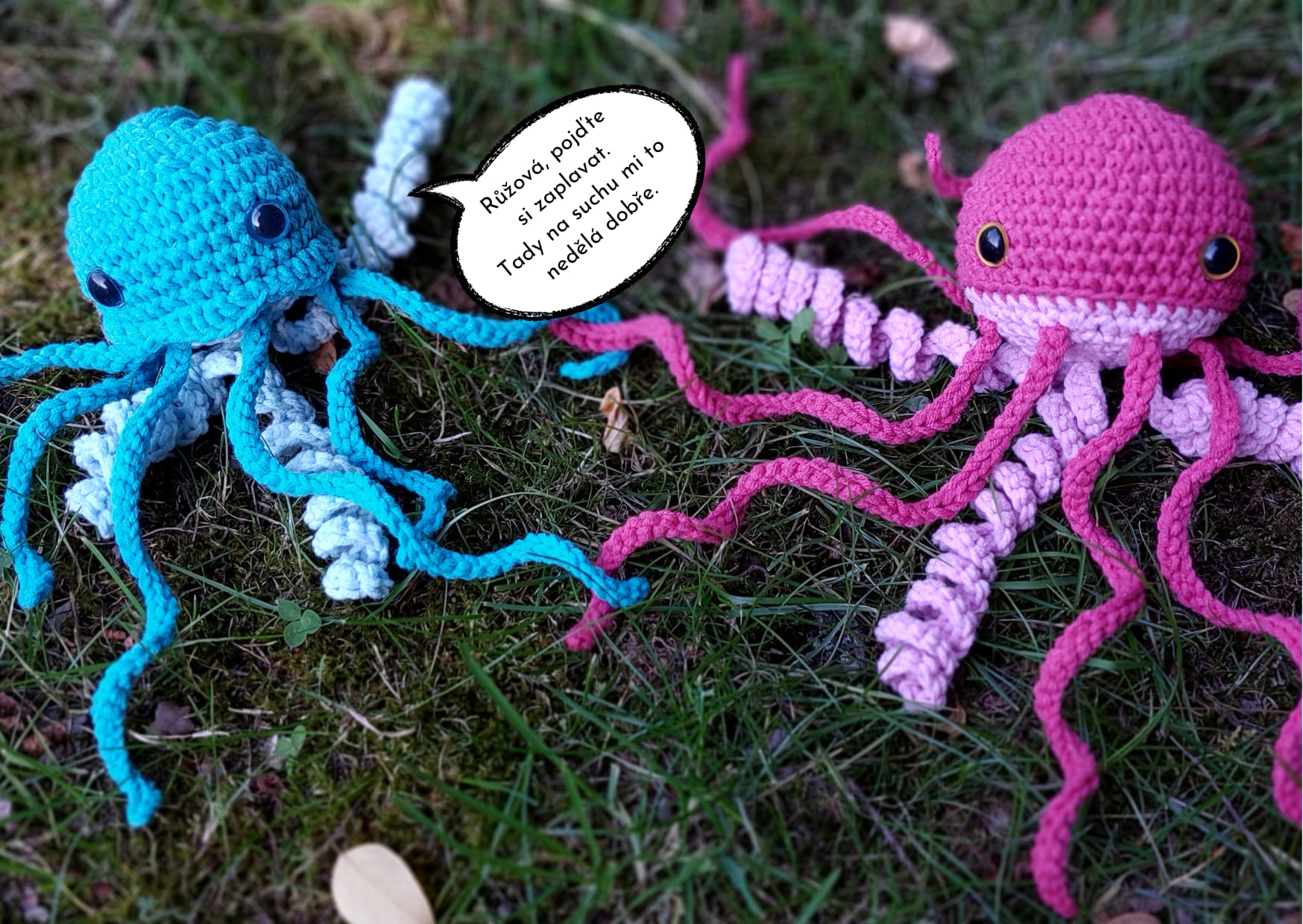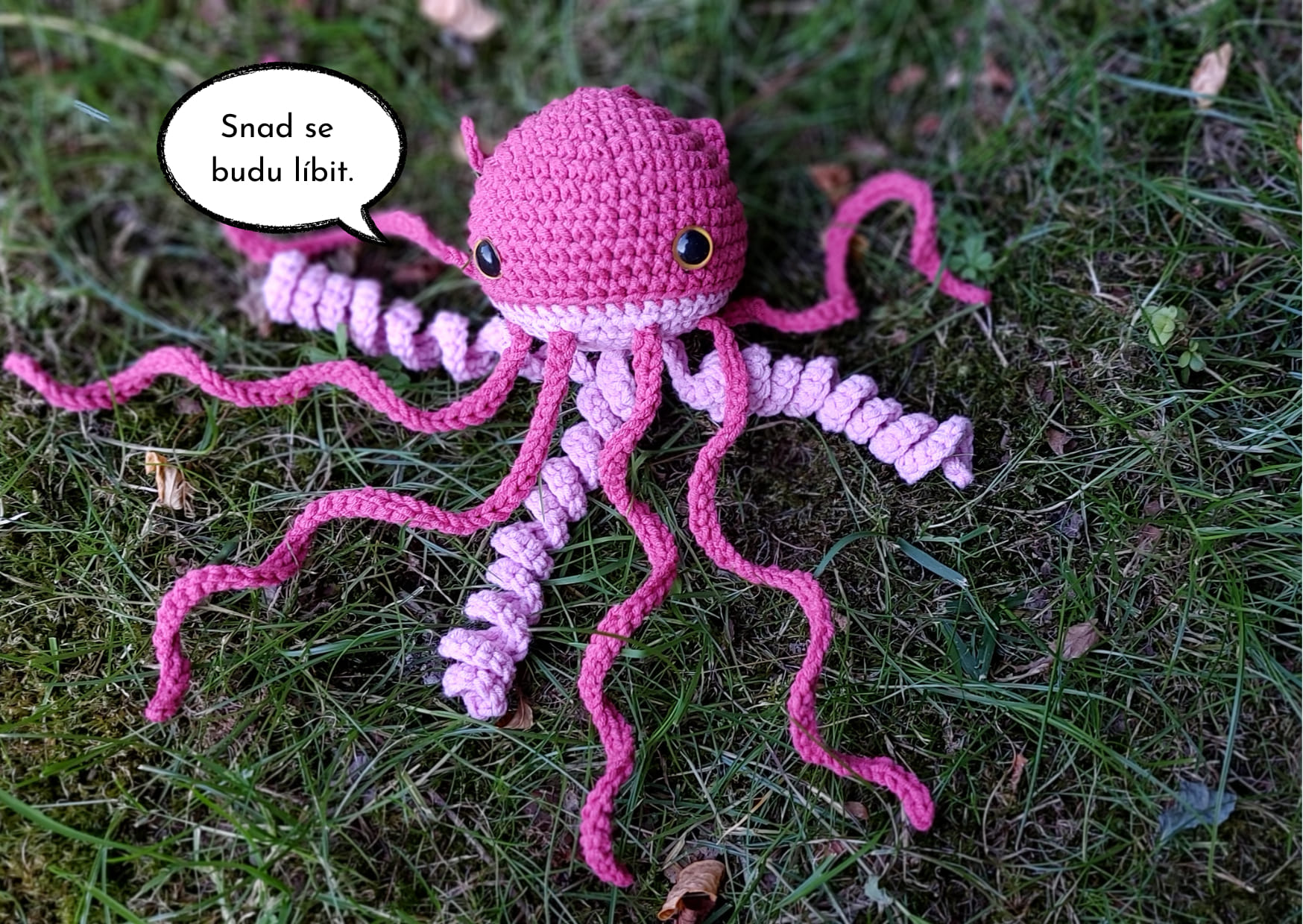 Promiň, ale nemůžu ti slíbit, že si domů odneseš hotový výrobek. Přeci jen háčkování celé medúzky nějakou dobu trvá. Ale věřím, že po kurzu už budeš vědět, jak na to a budeš si ji umět doháčkovat sám/sama doma podle návodu. Návod na medúzu, háček, přízi, výplň a očička si odneseš domů, abys měl/a vše potřebné pro zdárné dokončení svého díla.