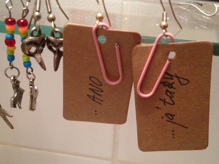 K dispozici bude materiál na výrobu naušnic. Závěsy do uší a papírové "cedulky". Ty pak spolu popíšeme, rozstříháme, zmačkáme, složíme, omalujeme, propícháme, polepíme atd..