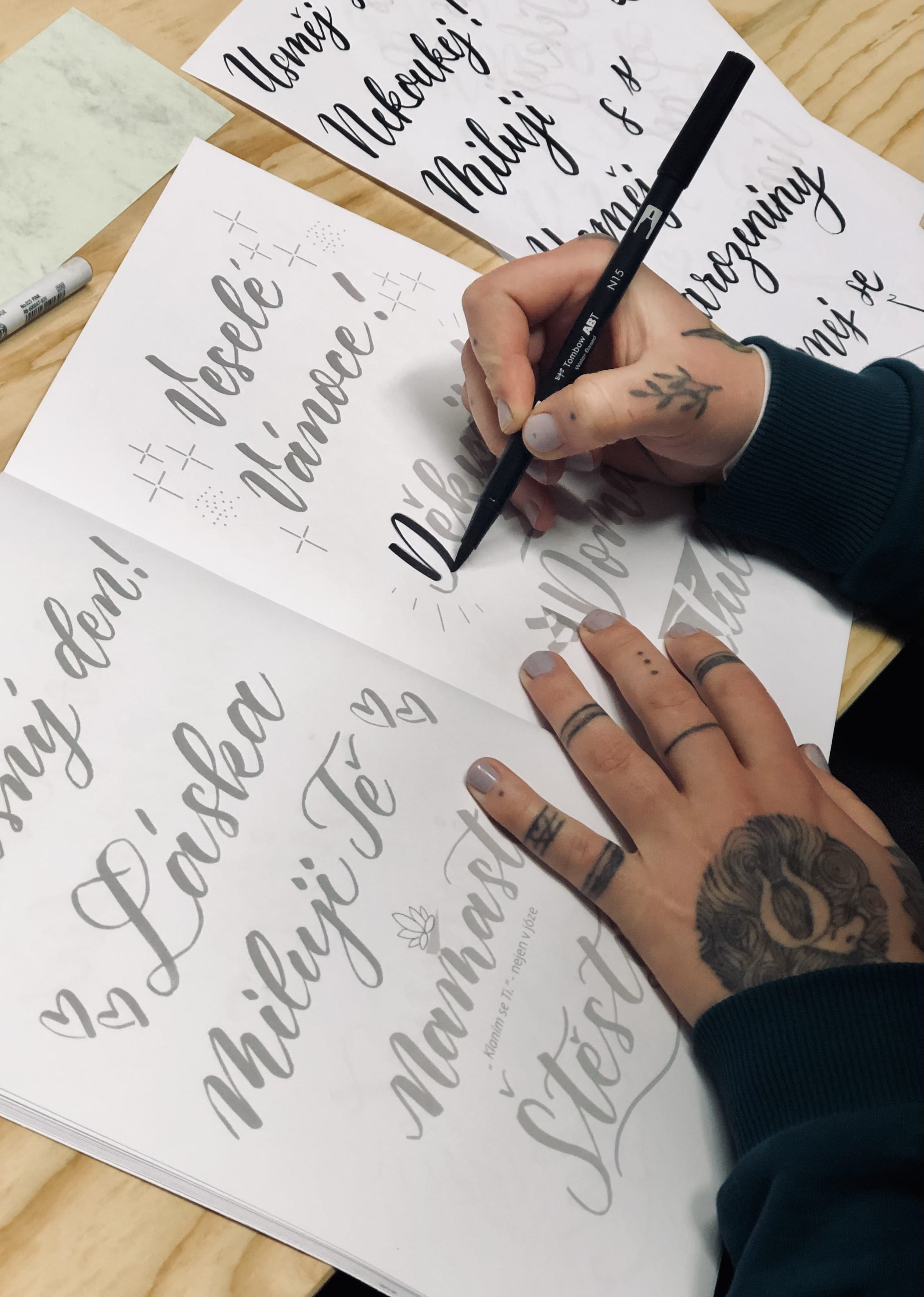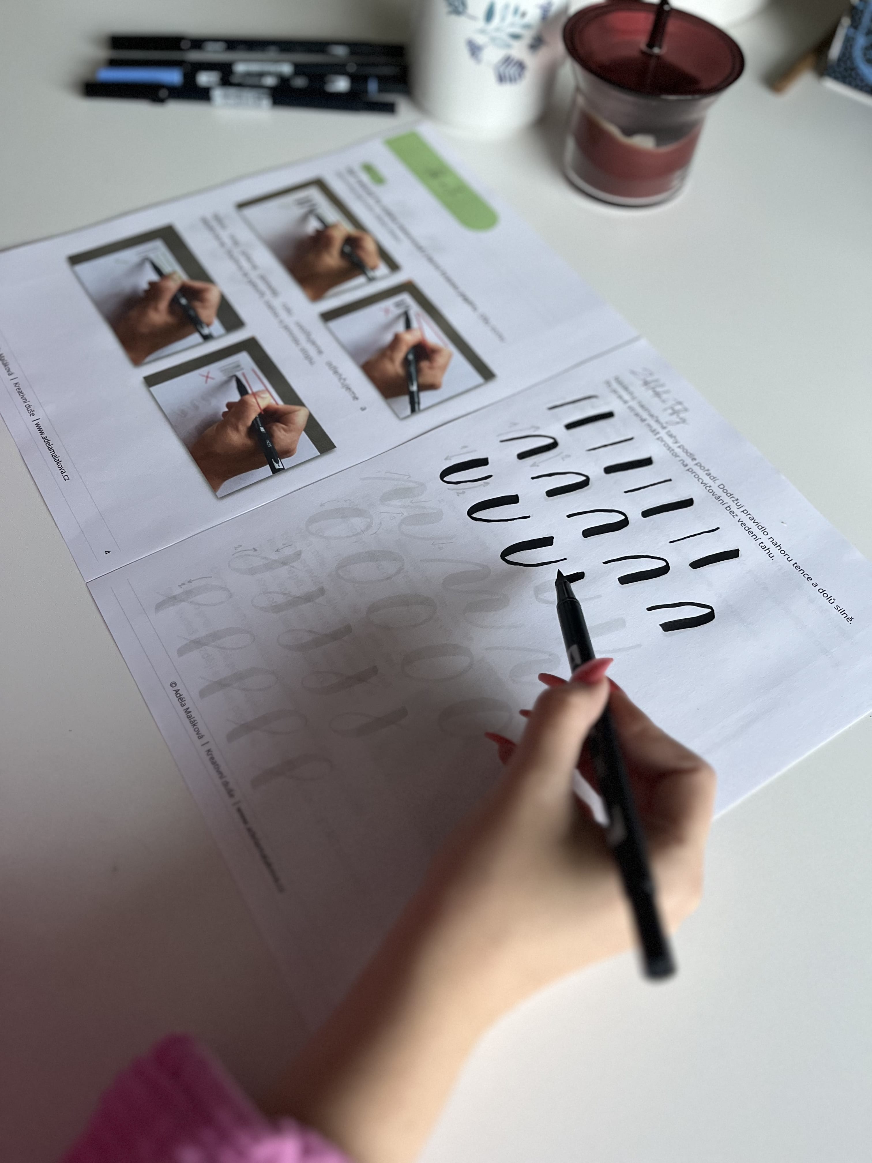 Na kurzu dostaneš autorskou písanku a brushpen Tombow ABT dual brush.