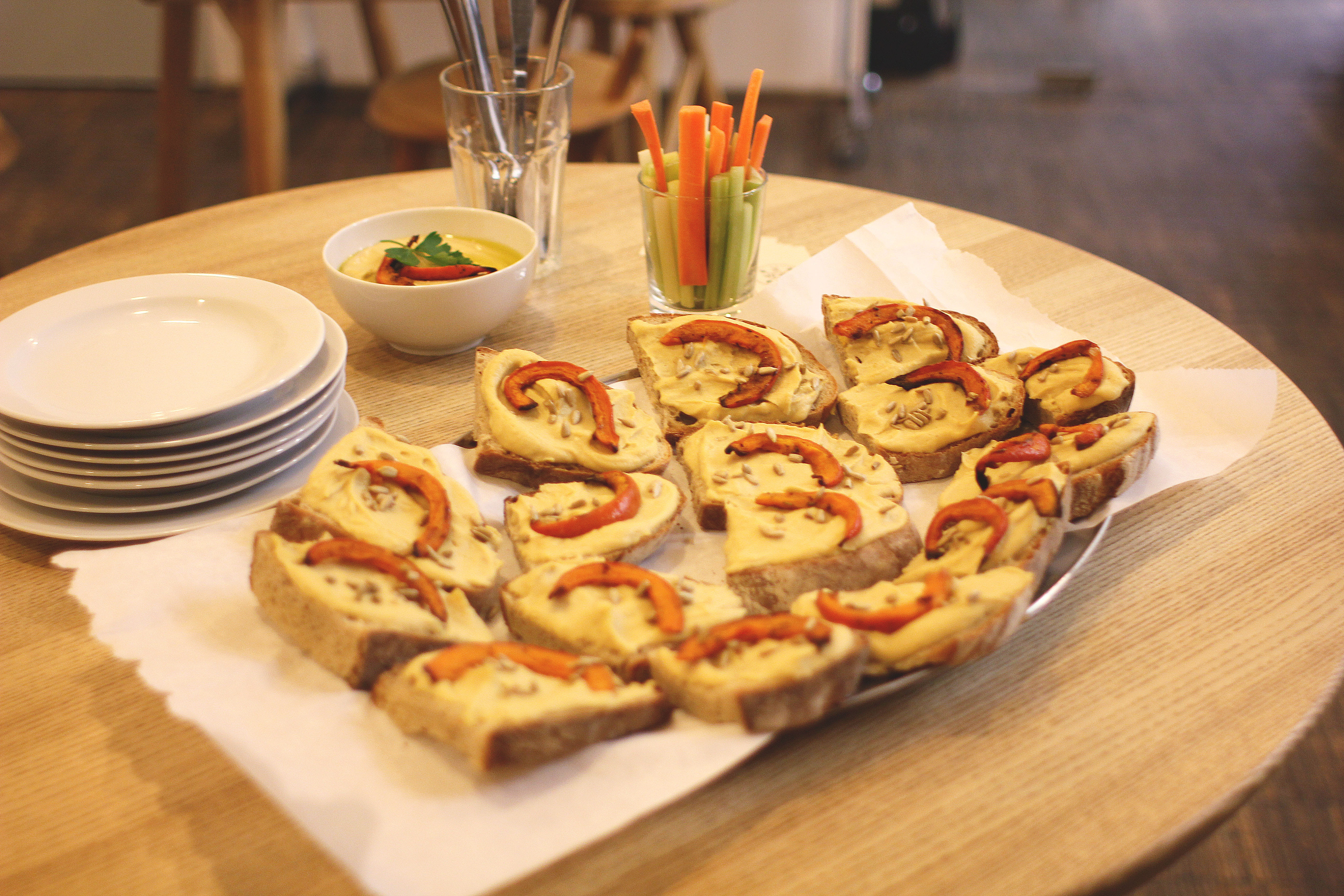Okořeněno chutným občerstvením, vínem a vhodným prostředím pro pokec, sdílení.