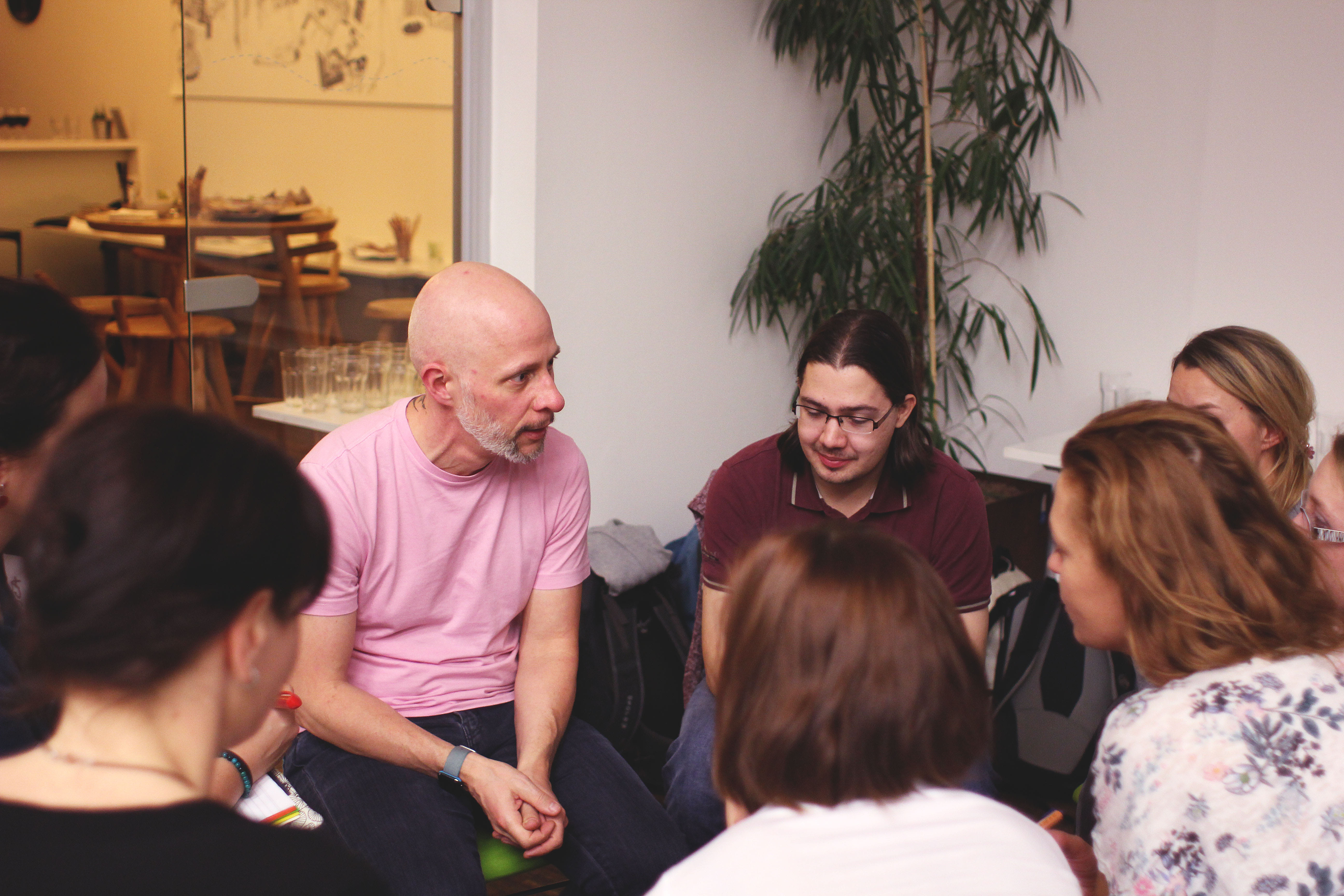 - V druhé půlce přejdeme do diskuze. Rozdělíme se k 6 stolům do menších skupinek a u každé z nich bude jeden ze zkušených lektorů (viz lektoři níže) – můžete se jej na cokoliv zeptat a společně s dalšími účastníky vám bude nápomocen probrat konkrétní dotazy k vašemu tématu kurzu a dát vám zpětnou vazbu.