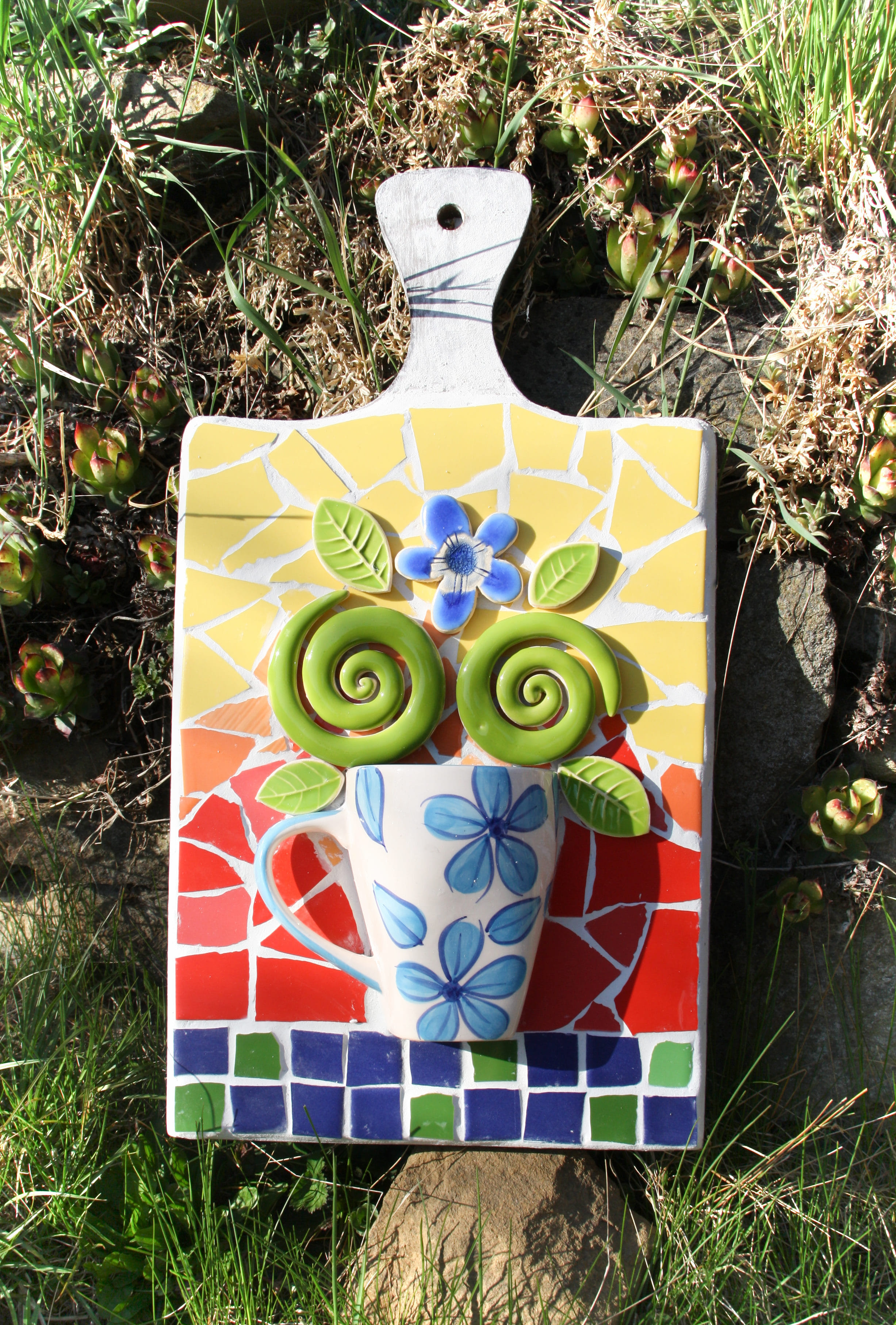 Mozaika je velmi uklidňující záležitost, a i kdybyste náhodou dorazili ve vysloveně pohnutém duševním stavu, mlácení kladivem do kachlíků je skvělý způsob vybití ;-))