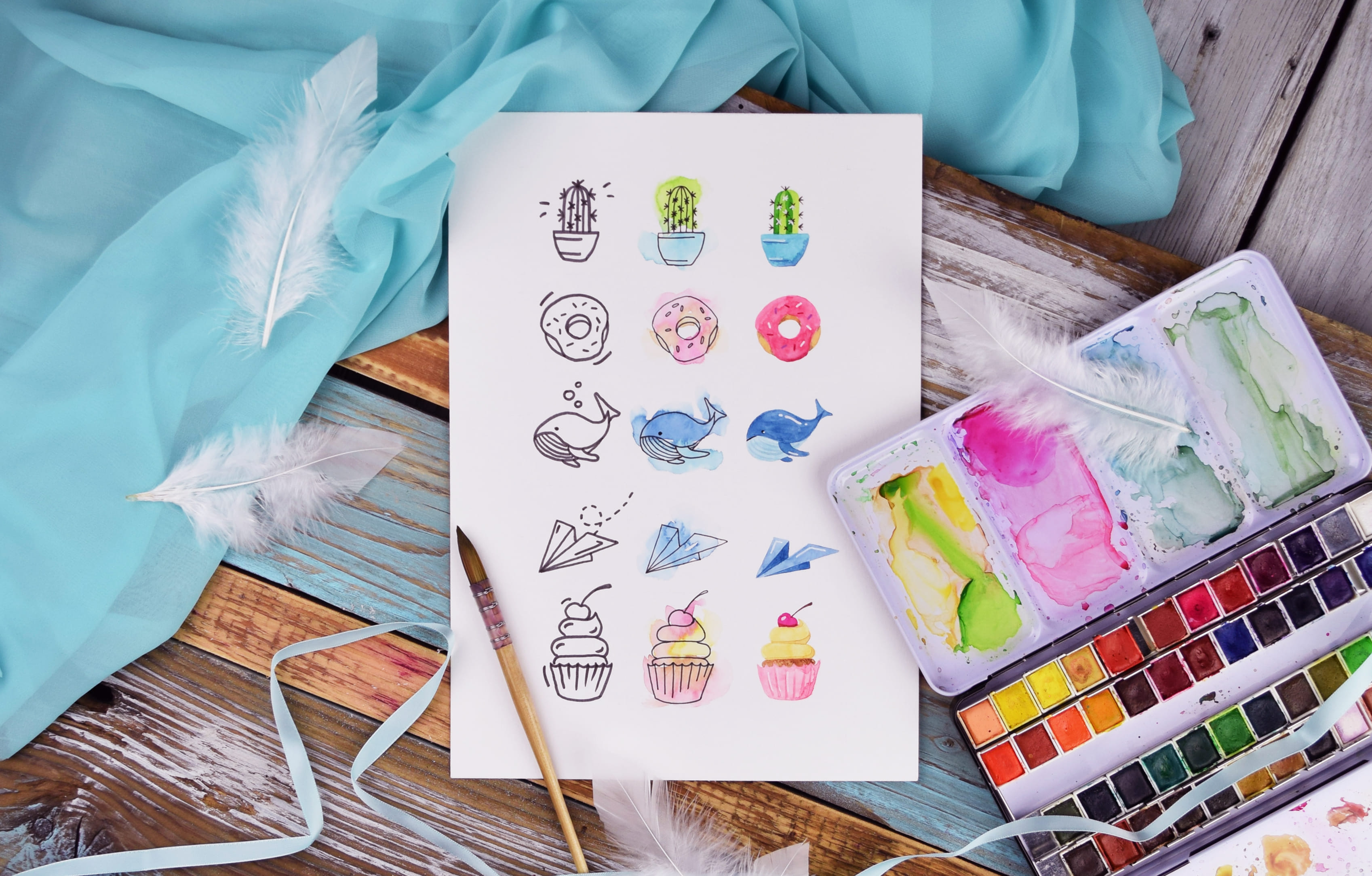 - Barevný doodle – zapojení akvarelové techniky