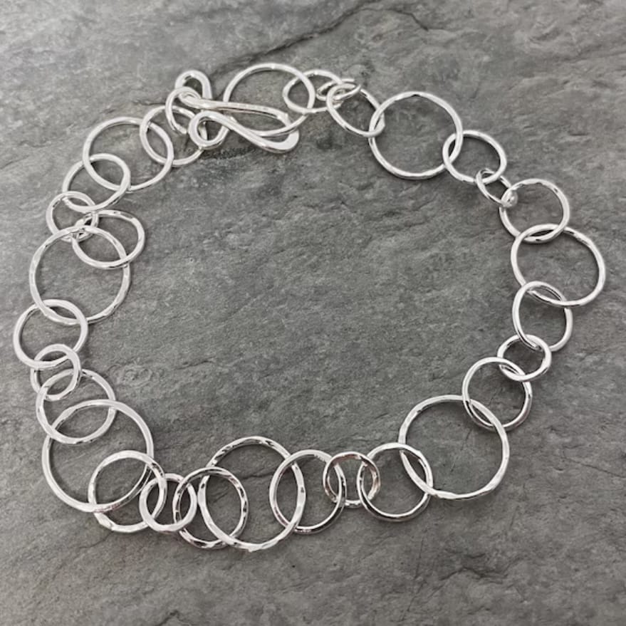 Workshop je rozdělen do tří částí podle vašich možností. Pokud si k náramku budete chtít vyrobit i nějaký přívěšek, tak to společně nějak vymyslíme. V první části si řetízek, zapínání a přívěsek navrhnete a naučíte se základy práce se stříbrem, v druhé potom vyrobíme komponenty řetízku a v poslední je pospojujeme a náramek vyleštíme.