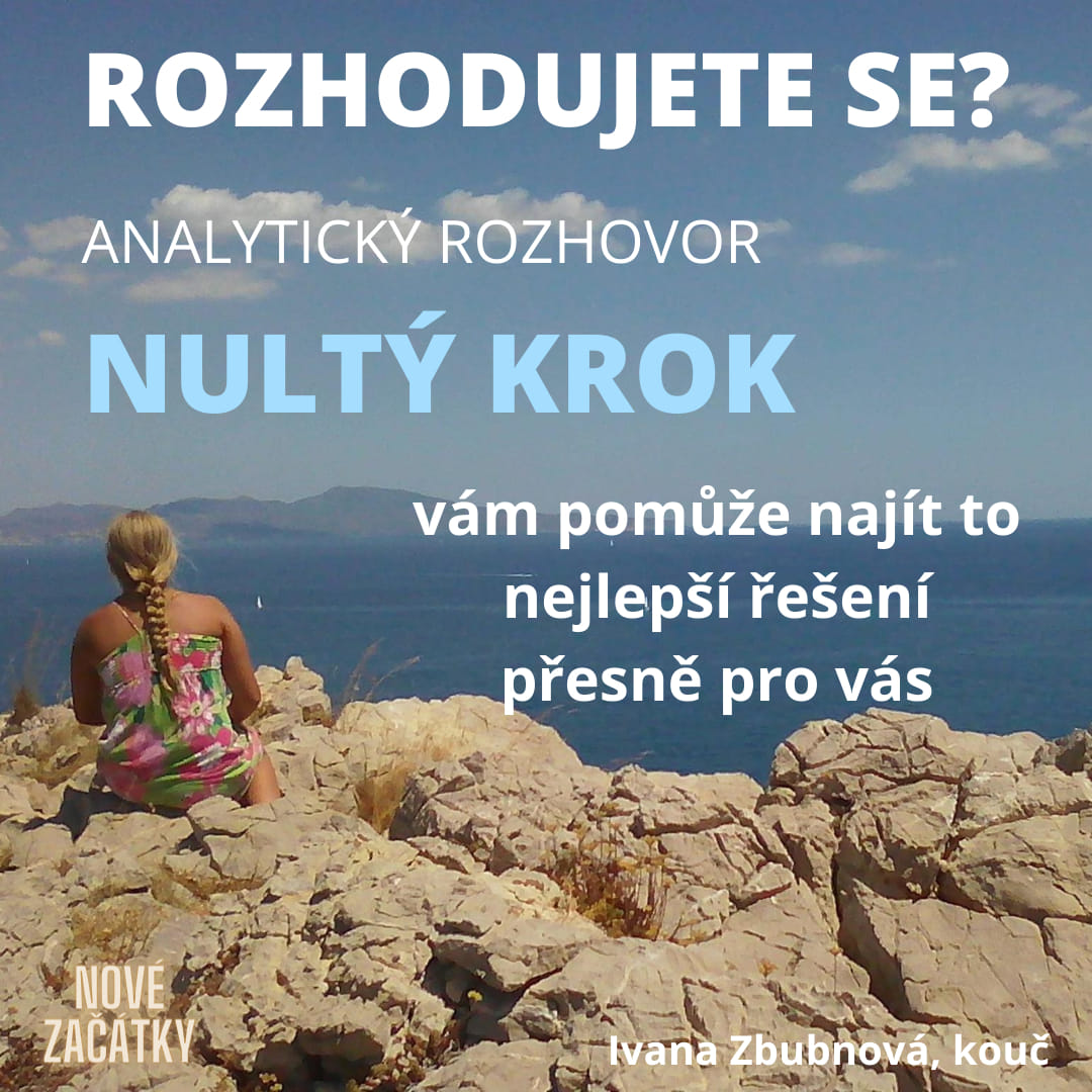 Pouhých 30 minut věnovaných na analytický rozhovor NULTÝ KROK vám může zachránit nejen spoustu času a peněz, které byste ztratili točením se v kruhu špatných rozhodnutí, rychlou, ale neuváženou změnou, ale díky NULTÉMU KROKU vzroste i váš pocit důvěry v sebe, který bývá opakovaným špatným rozhodnutí oslaben, a to vás může paralyzovat a bránit vám v životě udělat nutné změny.