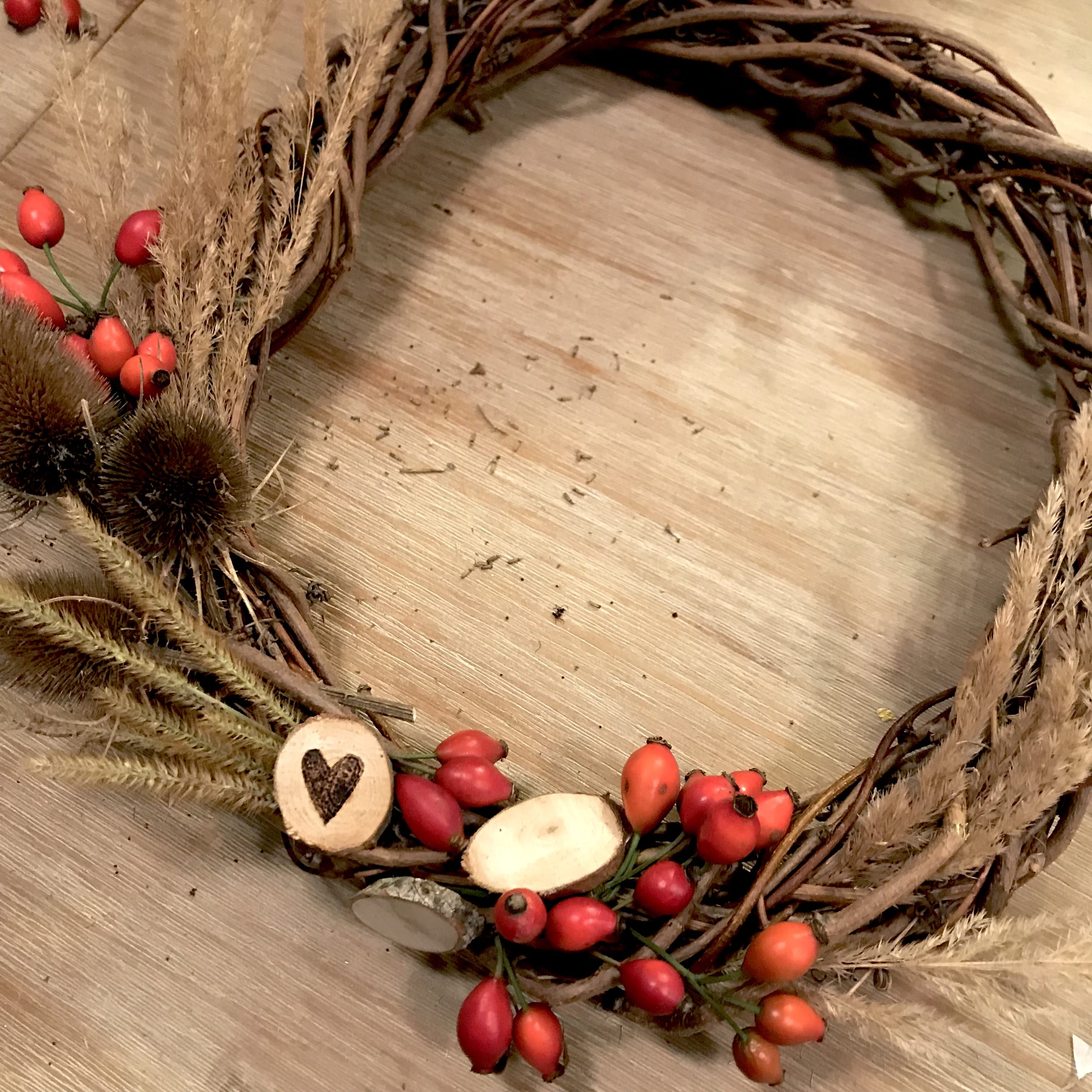 - různé druhy zasušených květin, travin, šípků, makovic, bodláků, šustí a dalších přírodnin