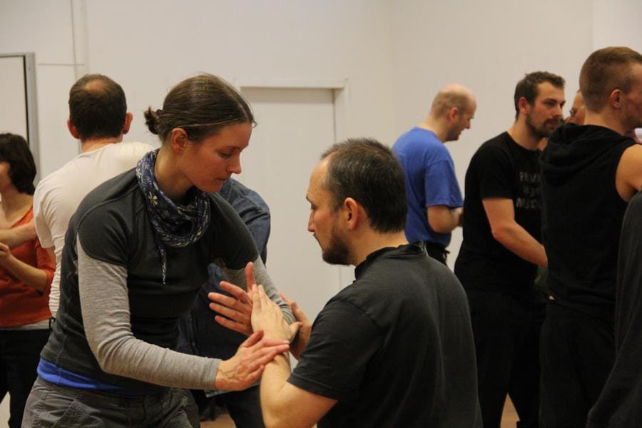 Budeme si trochu povídat, instruktor předvede sestavu a také si zkusíme zacvičit.