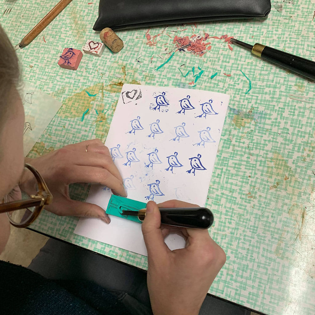 Během kuru si projdeme techniku linorytu, kterou při zpracování razítka z gumy používáme. K dispozici bude veškerý materiál i nářadí.