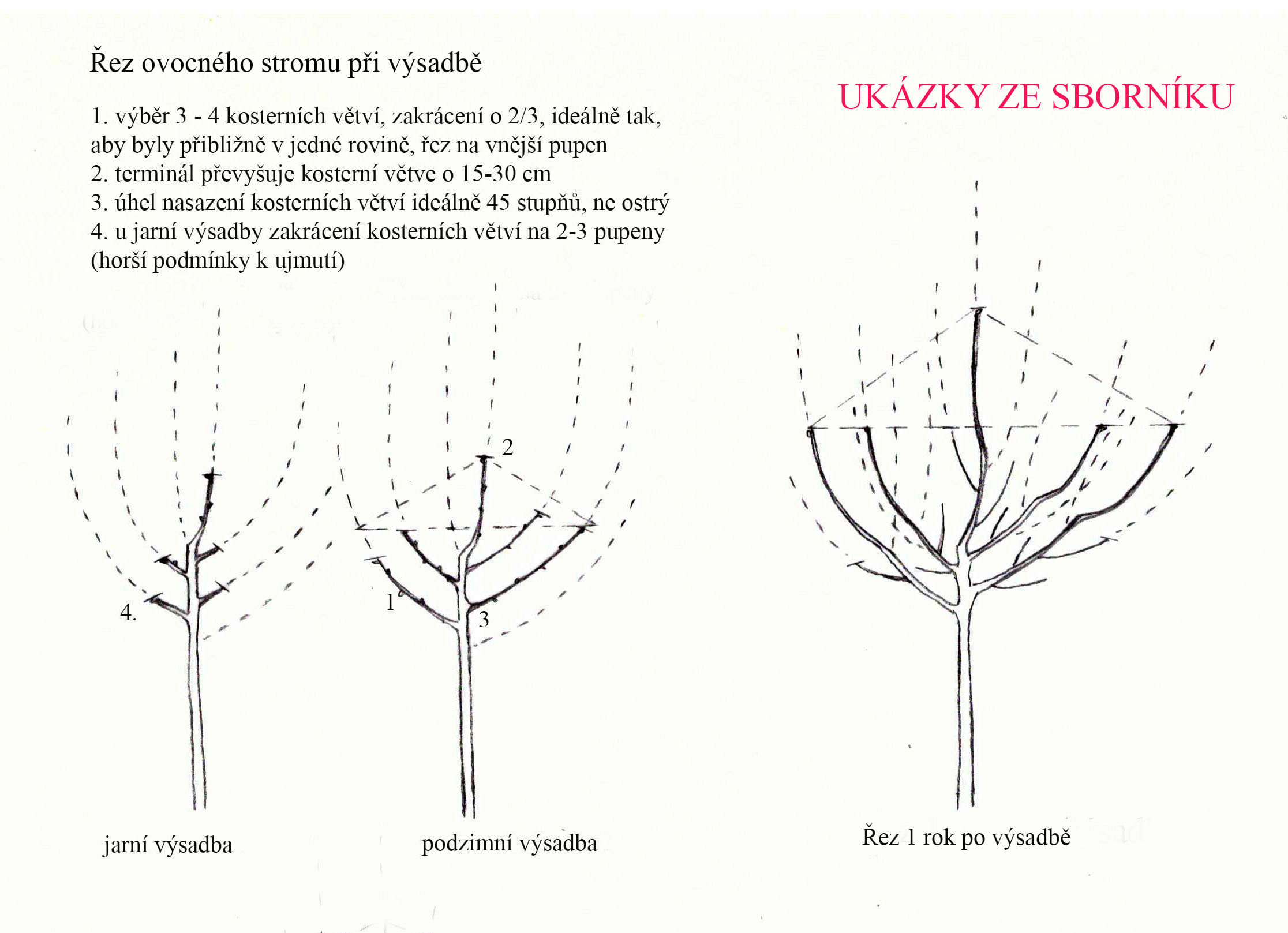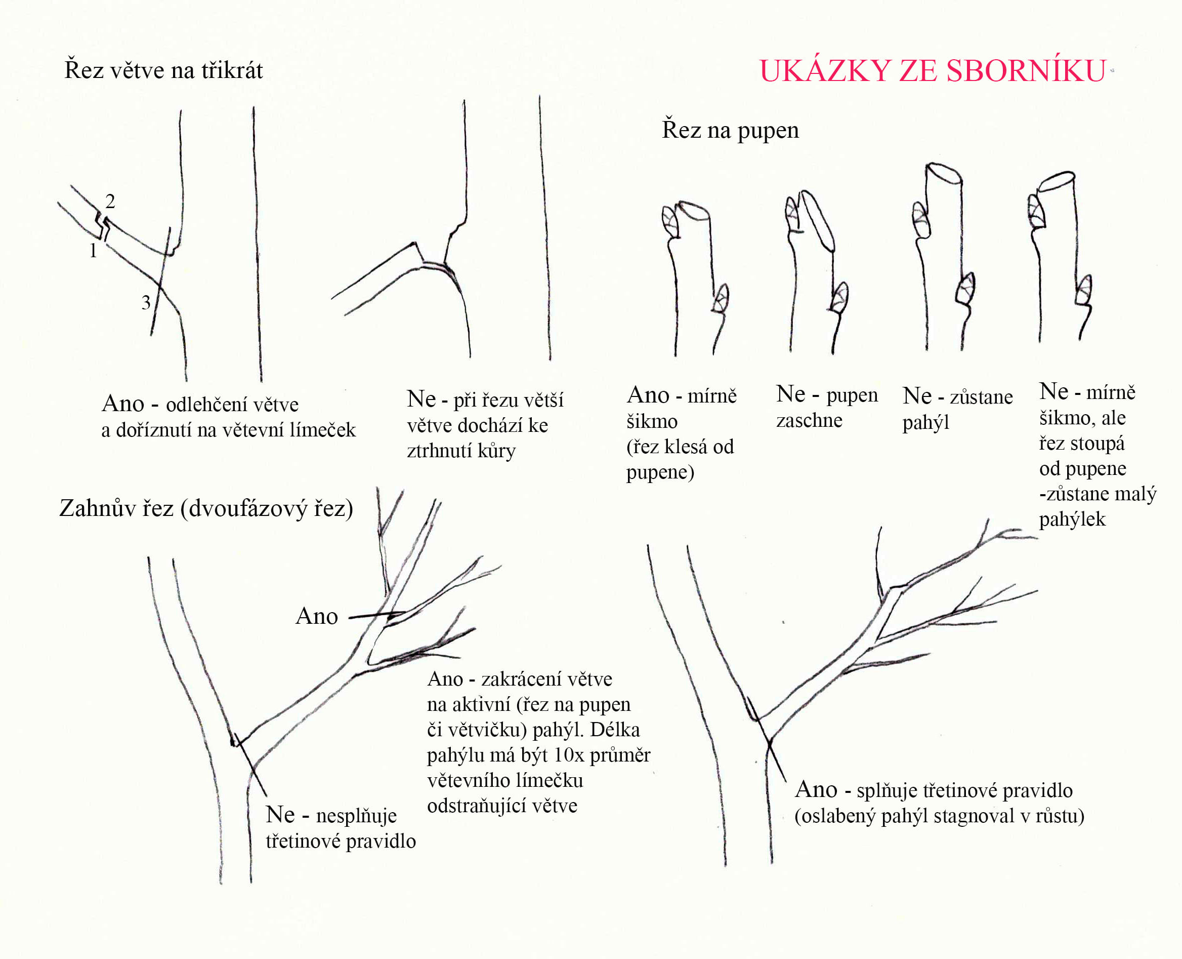 - konkrétní příklady řezů, termíny, tvary stromů