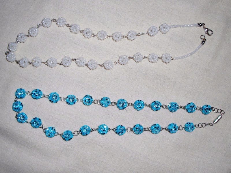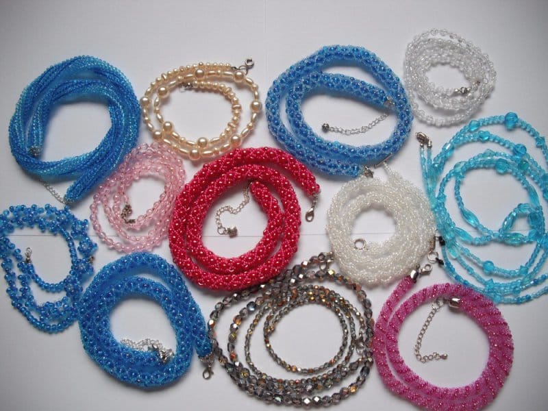 Navléct korálky dokáže i dítě. Uzlík na silonovém vlasci však píchá. Korálky na obyčejné niti se roztrhnou. Profesionální zapínání Vás naučím za pár minut. Díky tomu budete umět udělat navlékané náhrdelníky a náramky. Potom se za chviličku naučíte, jak se přidělá korálek, soustava korálků, nebo šitý výrobek k náušnicovému háčku. Posléze si podle přinesených ukázek šitých šperků vyberete z velké nabídky možností, které techniky se naučíte na kurzu. U většiny jdou z daného vzoru vyrobit náhrdelníky, náramky i náušnice, některé jdou použít dokonce i na prstýnek.