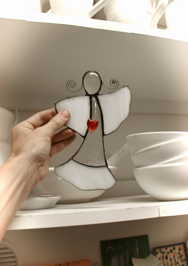 - závěsná ozdoba do okna: andílek, motýl, pírko... nebo něco jiného, co si sami vymyslíte a co nám technika a čas dovolí... a pak to opatříme očky, abyste si to mohli pověsit do okna a užívat si pak barevnou hru procházejícího světla... :-)