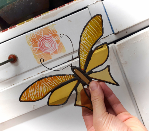 - olepovat měděnou Tiffany páskou