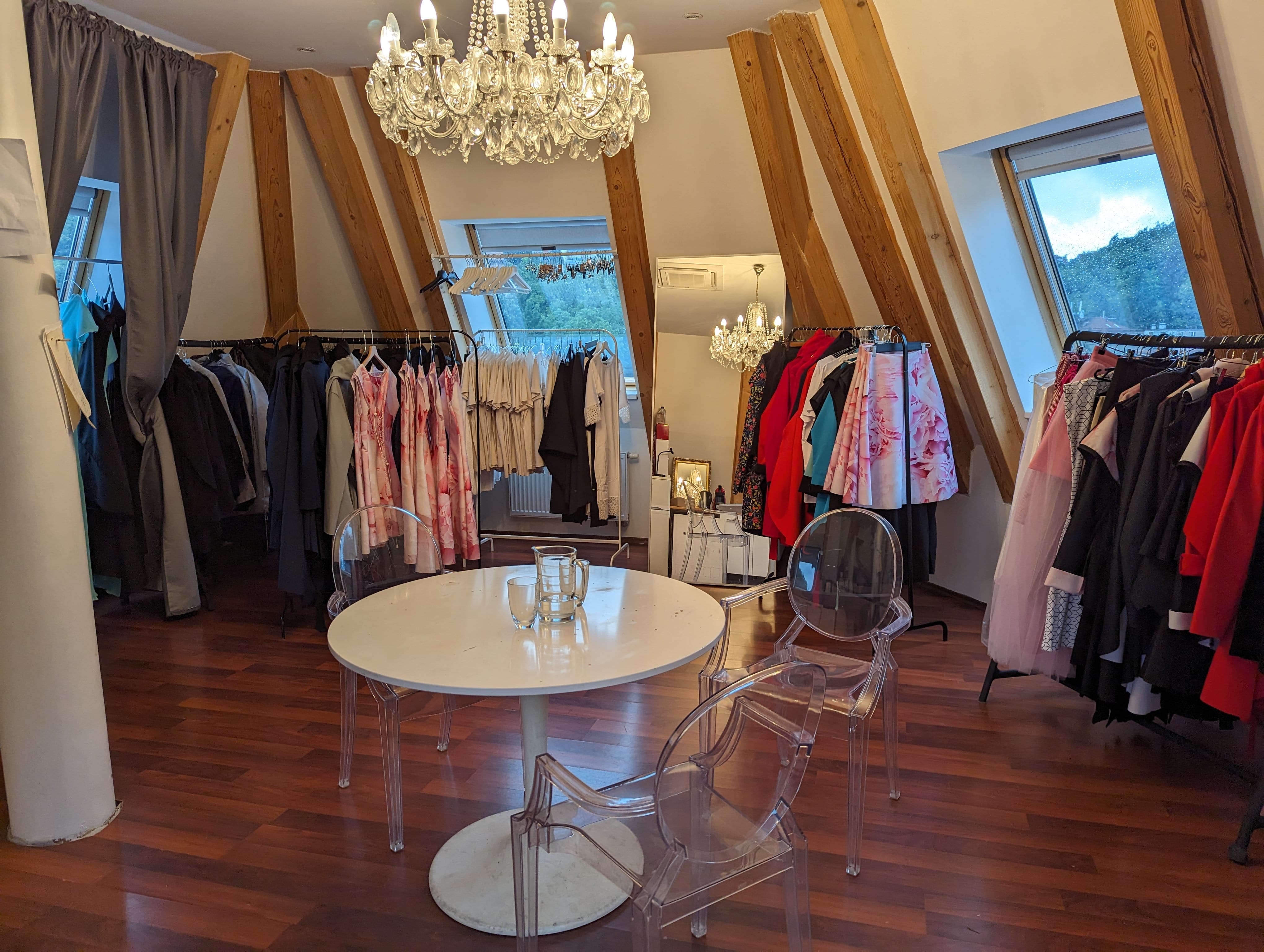 Přijďte ke mně do podkrovního ateliéru v malebné boční uličce kousek od centra Prahy, kde nenajdete superuklizený showroom, ale skutečný zašitý ateliér, kde se vytvořil kabát Architekt Jack pro Blanku Matragi, šaty pro Olgu Menzelovou nebo můj ikonický model, který si před rokem odvezla Kate Mulgrew, kapitánka Kathryn Janeway ze Star Trek Voyager (z toho jsem pořád ještě trochu v šoku). Všude jsou látky, šicí stroje a možná to přesahuje hranice "uměleckého nepořádku", ale takhle to doopravdy vzniká, na nic si nehraju. A tam vám uvařím kávu (nebo čaj, jasně) a budu vám vyprávět nádherné příběhy o šatech a návrhářích, nad kterými zůstává rozum stát, ale ony se doopravdy staly.