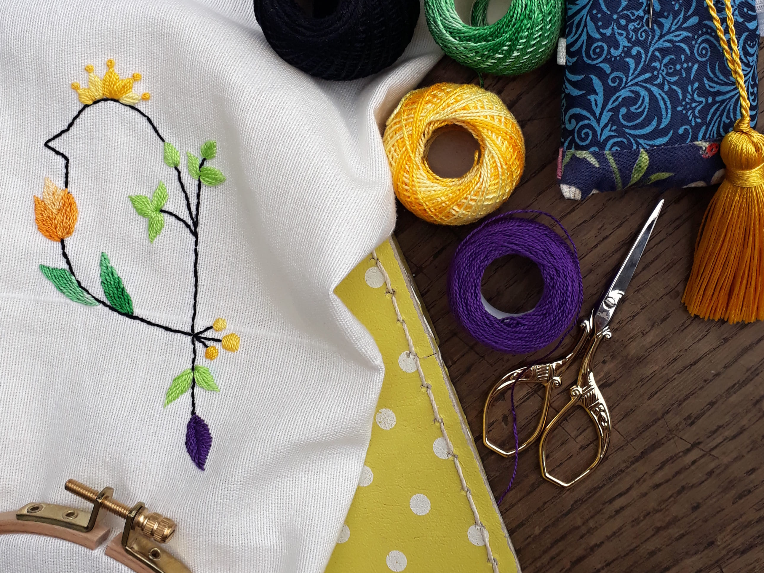 - Seznámíte se s přízemi, jehlami, potřebami a metráží vhodnou pro výšivku.