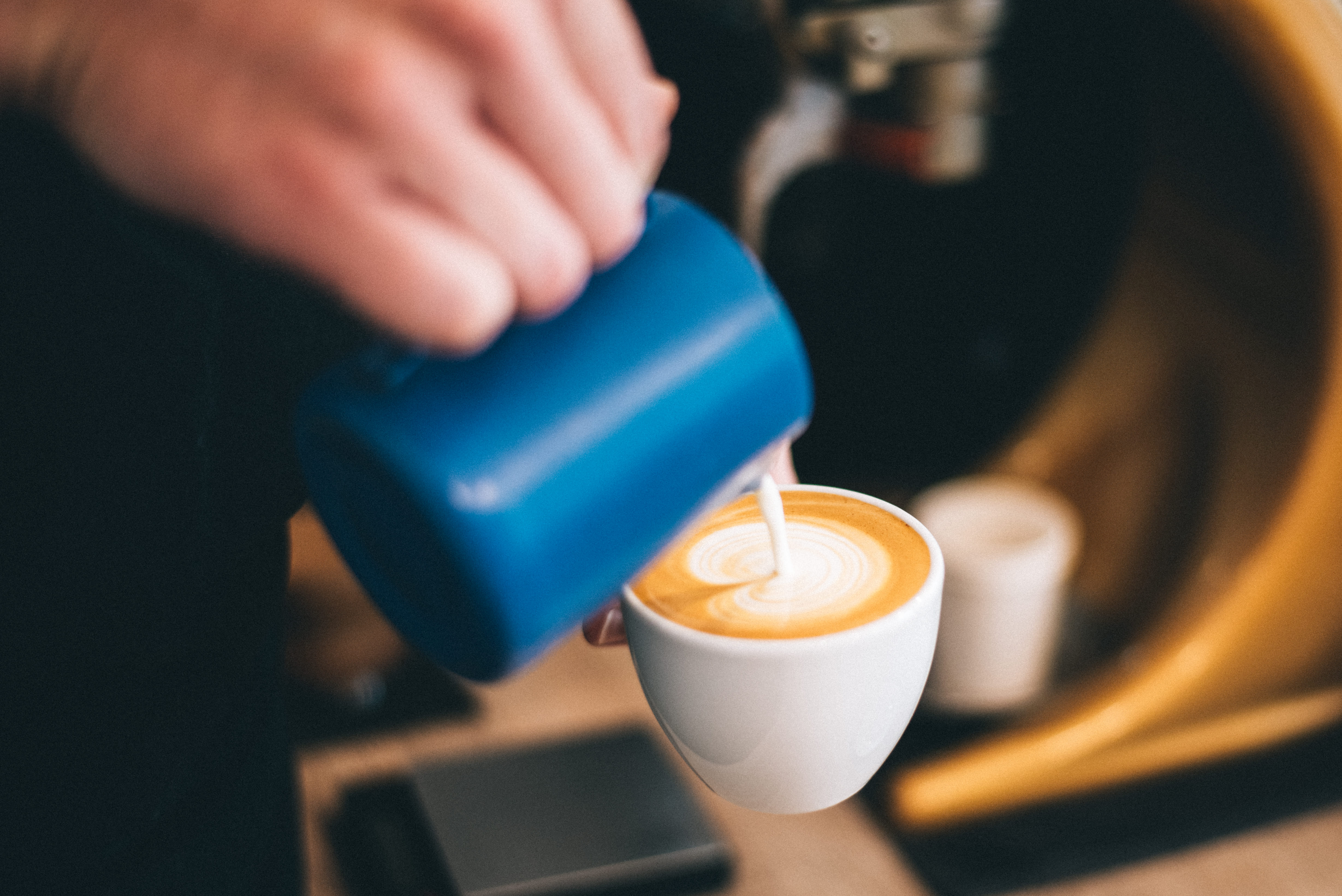 - Technika držení konvičky na latte art a práce s ní