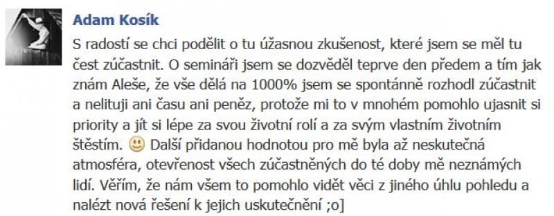 Zajimavy a prinosny obsah, urcite by mohl byt delsi s vetsim prostorem pro vyzkouseni koucovani a byti koucovanym.