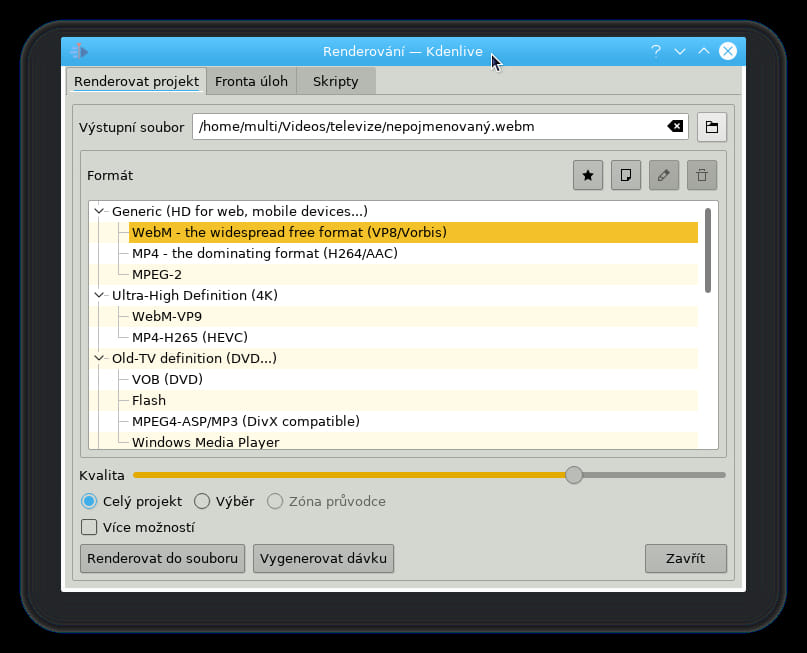- renderování videa