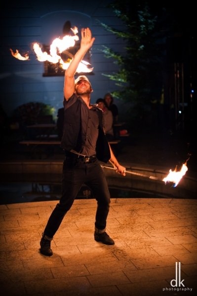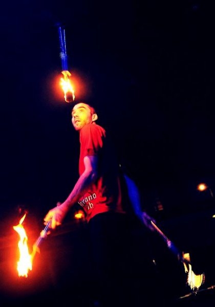 Jestli si představuješ žongléra jako někoho kdo stojí na místě a nad ním lítají "hračky" tak na to okamžitě zapomeň.