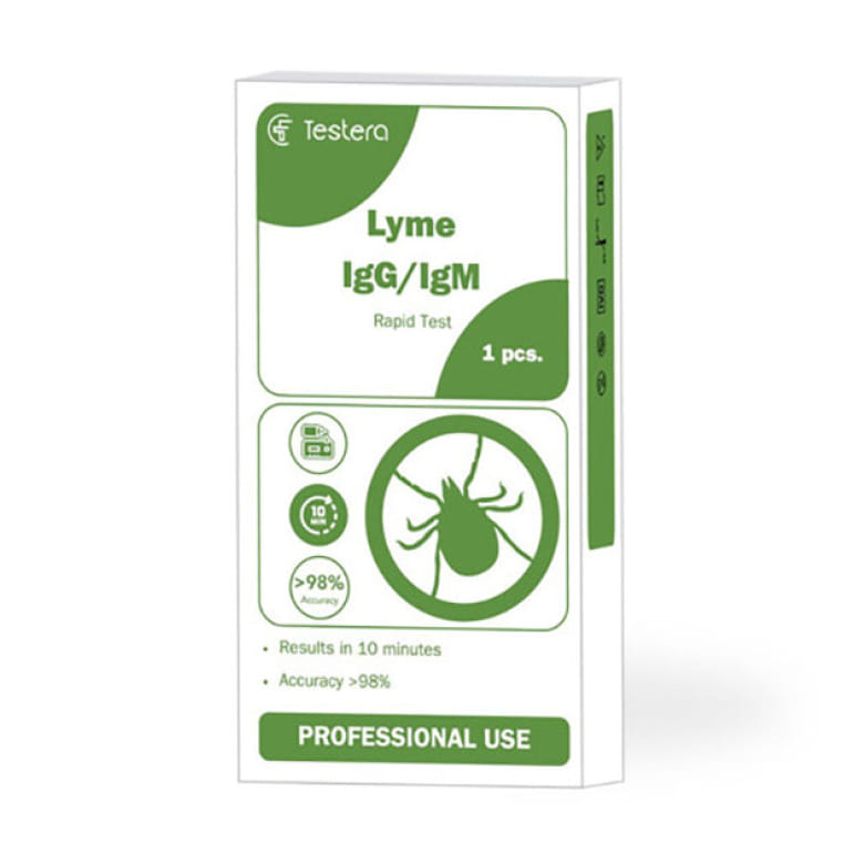 The Lyme Disease (Borrelia) rapid test kit detects recent or current infection in human blood samples via the identification of both IgG and IgM antibodies.