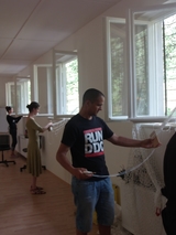Prima podvečer strávený v příjemném prostředí a dokonce s domácím občerstvením. Na úvod jsme se vzájemně představili, následně nám bylo oběma trpělivými lektorkami předáno praktické know how a na závěr jsme se za odměnu pohoupali v síti a dozvěděli se něco o celém projektu. Upletení jedné sítě trvá asi 8 hodin a proto jsme každý upletli jen začátek. Po kurzu bylo možné dokoupit si za rozumnou cenu materiál a pokračovat tak doma.